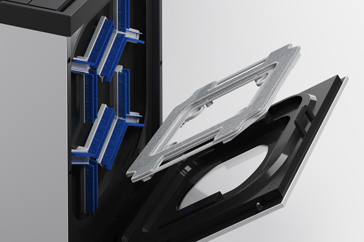Ja nepieciešams, sistēma veic rūpīgu stacijas iekšpuses tīrīšanu – rotējošo disku aizmugurē esošās birstes pilnībā notīra kameras sienas. Netīrais ūdens un atlikumi tiek savākti hermētiskā tvertnē un pa speciālu kanālu novadīti netīrajā ūdens tvertnē.