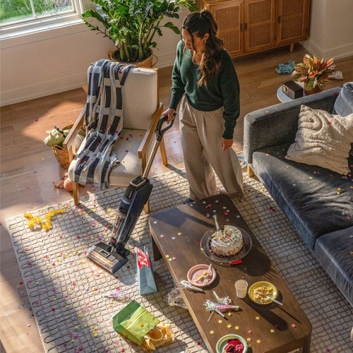 Ar vienu ierīci vari ērti tīrīt dažādas virsmas – laminātu, koka grīdas, flīzes, kā arī paklājus. Tas nodrošina efektīvu un ērtu uzkopšanu visā mājoklī, bez nepieciešamības izmantot vairākas ierīces.