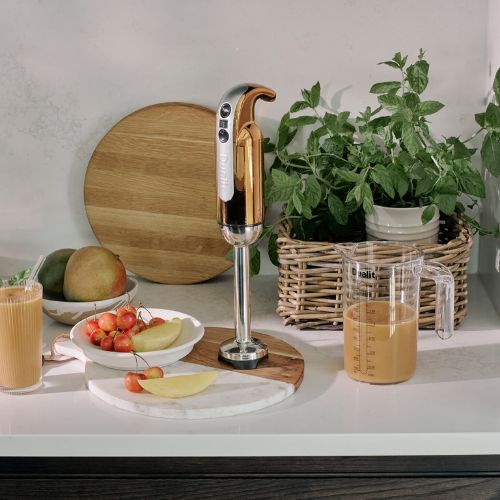 Dualit rokas blenderis ir daudzfunkcionāls virtuves rīks, kas paredzēts gan daudzpusībai, gan jaudai. Ar ātrumu un precizitāti 700 vatu motors var tikt galā ar dažādiem uzdevumiem, sākot no zupu un smūtiju blendēšanas līdz dārzeņu smalcināšanai un krējuma putošanai. Ar ergonomisku rokturi, kas lieliski iekļaujas jūsu rokā, jums ir pilnīga kontrole, un, pateicoties pretiesūkšanas maisīšanas stienim, tas neuzķersies uz pannas dibena. Tas ir aprīkots ar virkni augstas kvalitātes piederumu, tostarp blenderēšanas kloķi, smalcināšanas bļodu, putotāja uzgali un Tritan krūzi. Ar plašu apgriezienu diapazonu (7000-16000 apgr./min) un kompresoru turbo (17 000-18 000 apgr./min.) Dualit rokas blenderis ir piemērots vissmagākajiem virtuves izaicinājumiem.