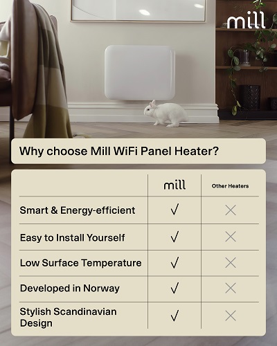 Ražotāja Mill sildītāji ir izstrādāti Norvēģijā un tiem ir minimālistisks skandināvu dizains. Ar Matter, Zigbee 3.0 un WiFi atbalstu, šis ir viens no nākotnes drošākajiem sildītājiem tirgū – gatavs viedajām mājām neatkarīgi no izmantotās platformas.